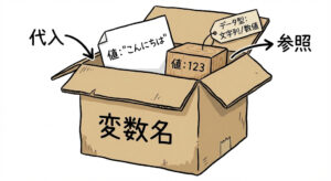 変数とは、「データを入れておくための、名前付きの箱」のことです。